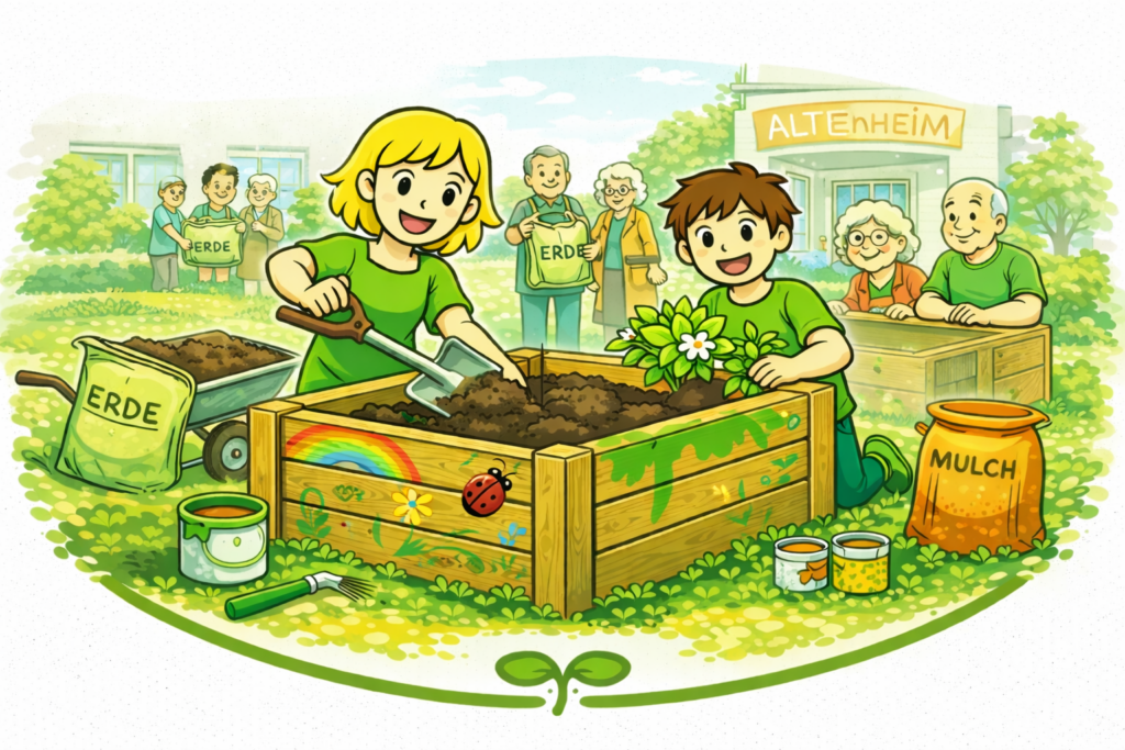 ISIES – Wir befüllen das Hochbeet am Altenheim