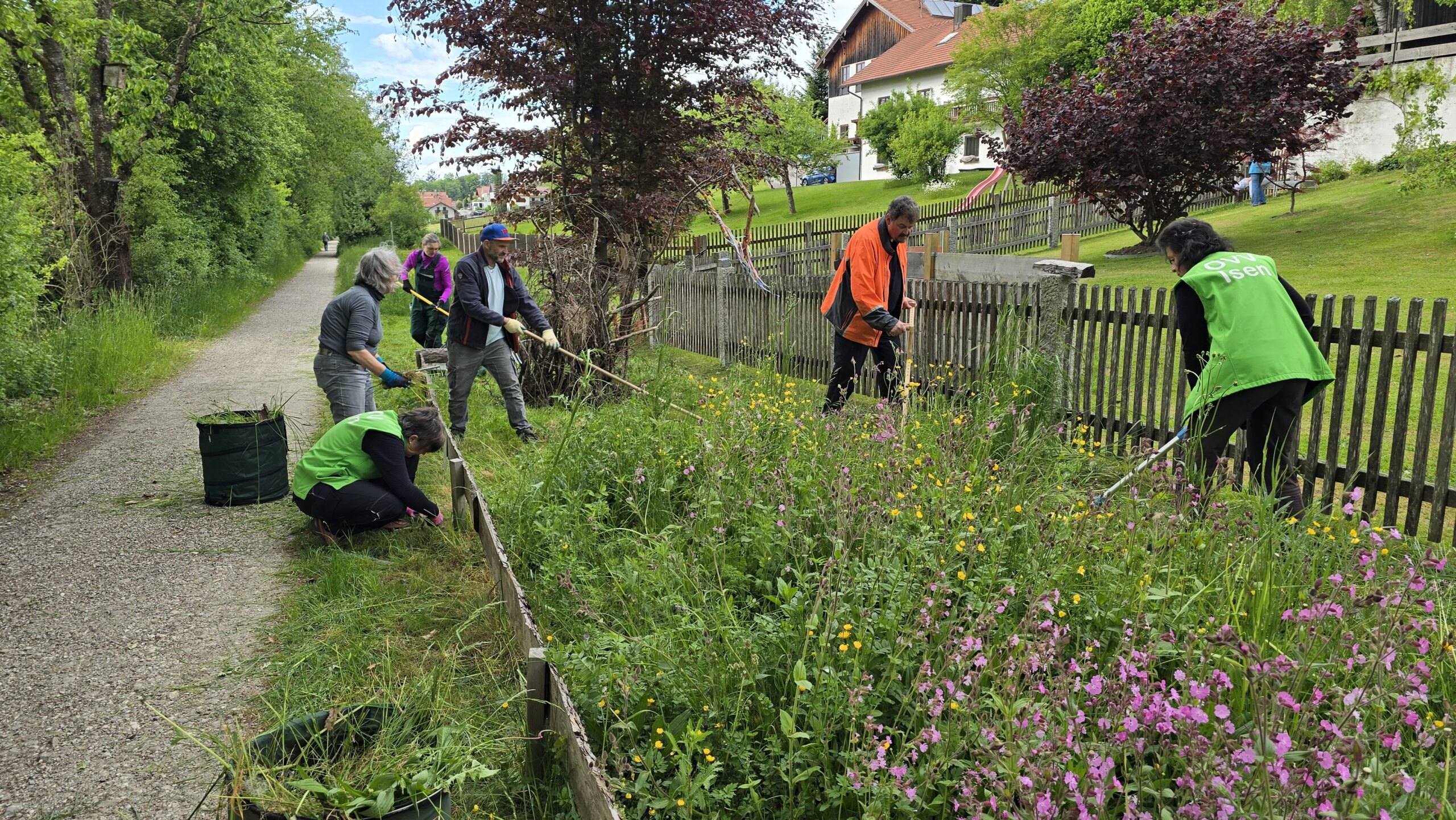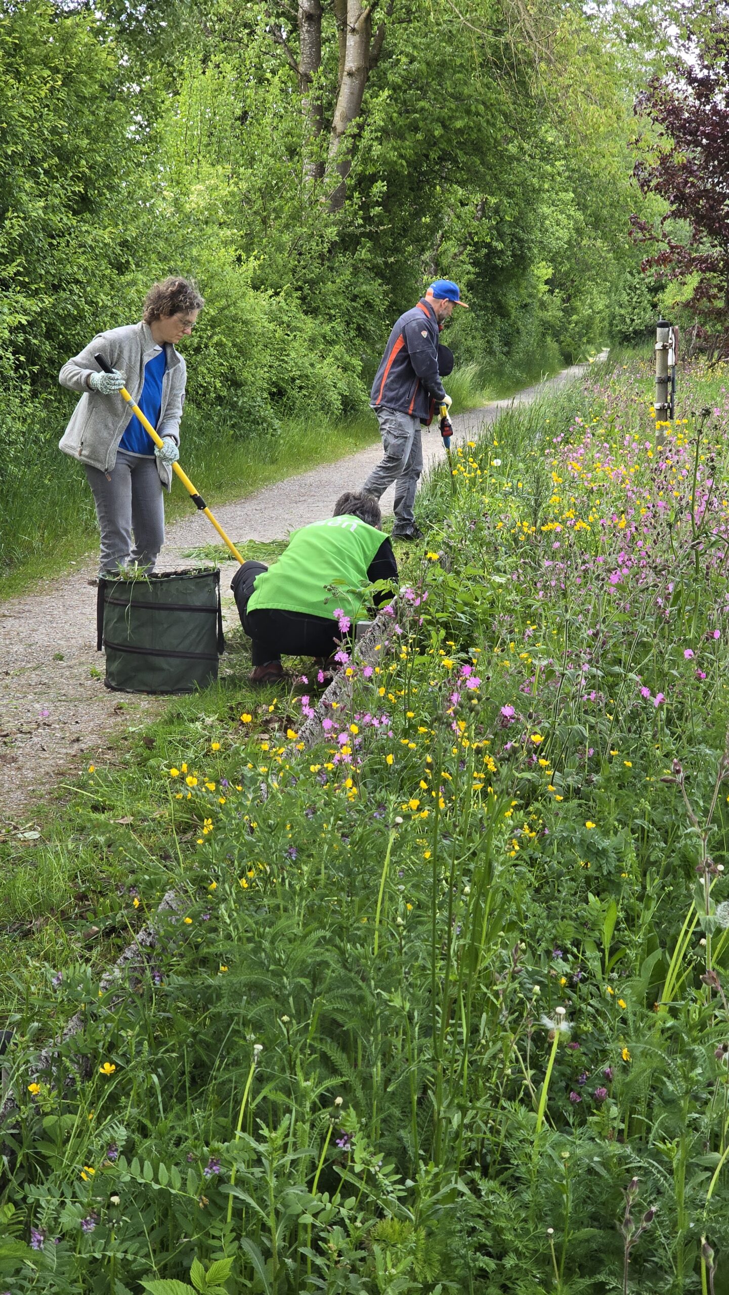 Zu siebt haben wir zwei Stunden lang am Heckenlehrpfad bei unserer Blühwiese angepackt: