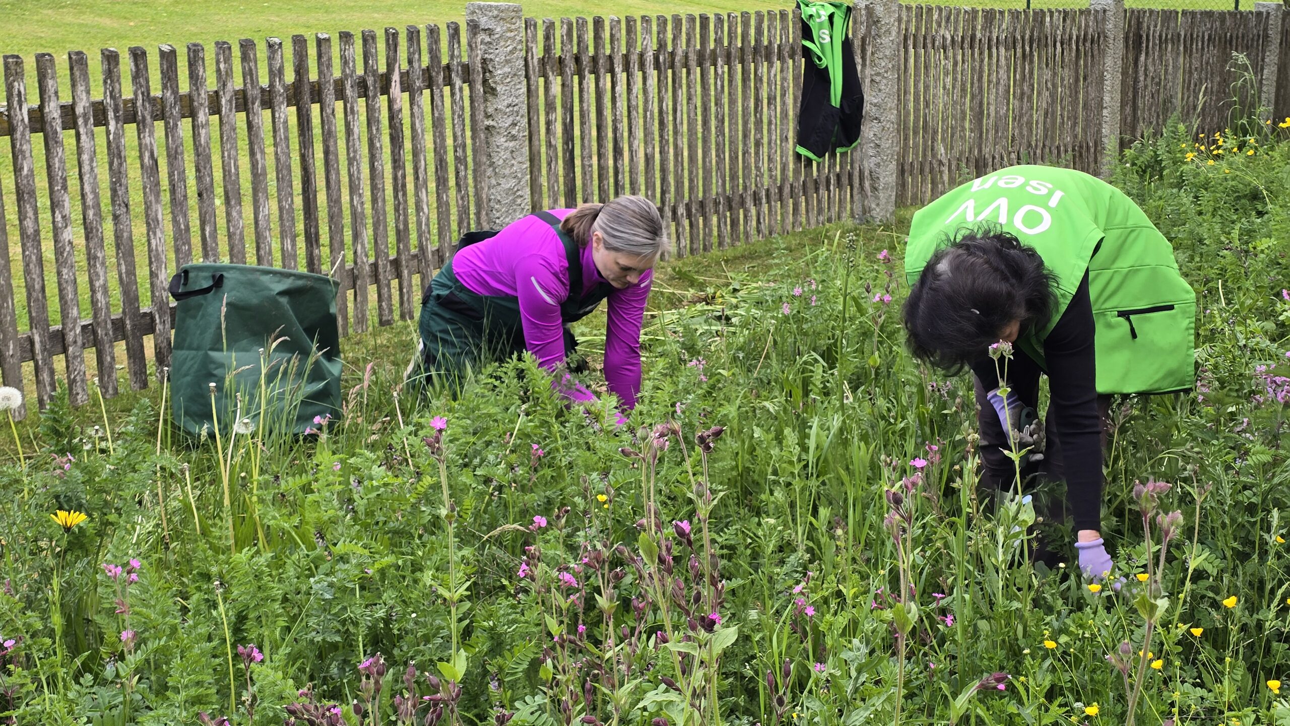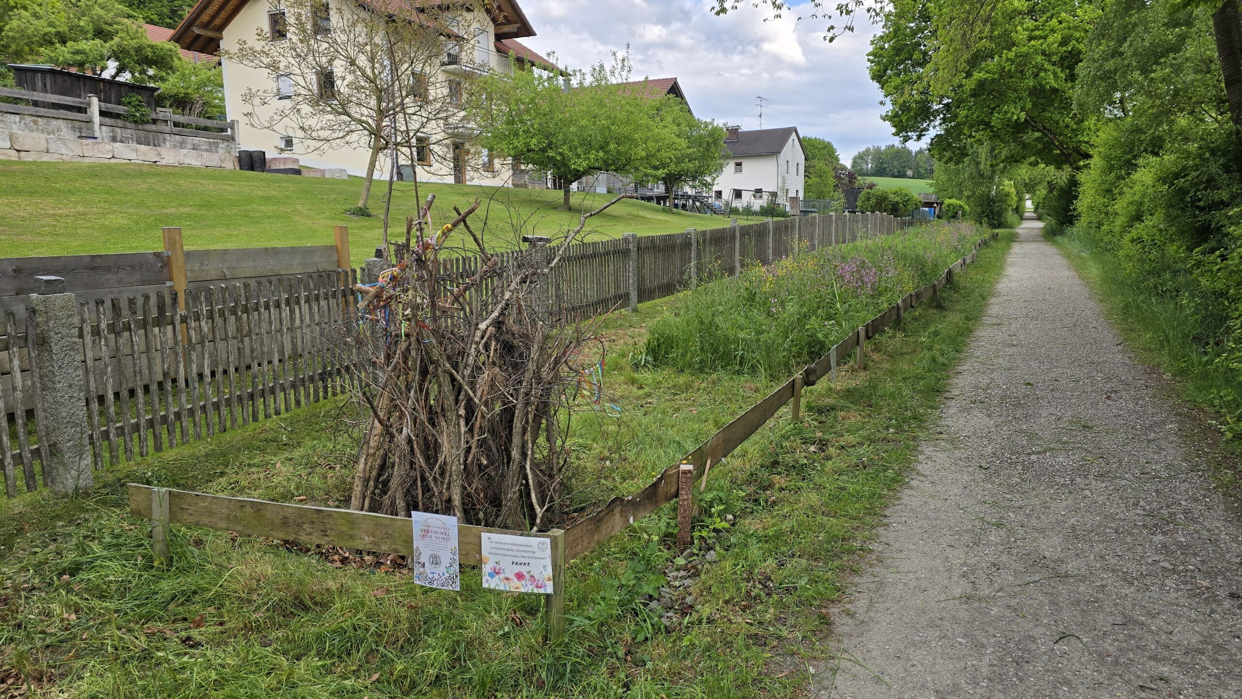Löwenzahn, Spitzwegerich und Gras mussten weichen, damit die bunte Vielfalt Platz hat. Auch rund um die Wiese wurde das Gras gestutzt – und neben der Käferburg gibt’s jetzt einen neuen Pflanzplan – seid gespannt! 🐞🌱