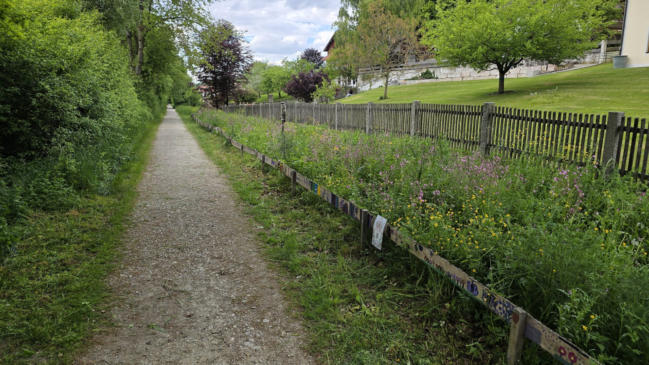 Besonders freut uns, wie die Wiese dieses Jahr ganz ohne unser Zutun so schön blüht – mit ganz anderen Blumen als im letzten Jahr! Die Natur überrascht uns immer wieder.